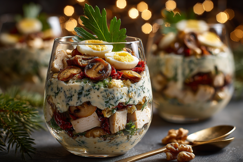Такой легкий и полезный салат станет украшением вашего новогоднего стола и позволит наслаждаться праздничным настроением без лишних калорий. Подавайте его в мини-бокалах — это не только оригинально, но и удобно, сохраняя при этом внимание к здоровью.