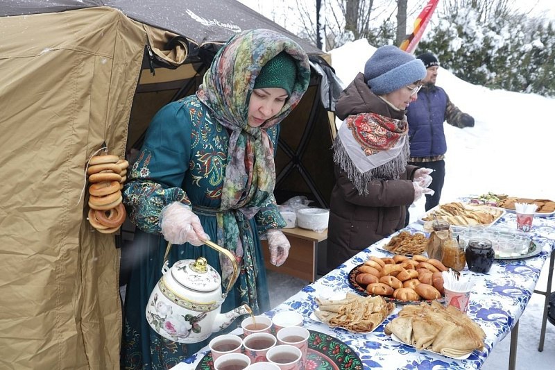 Торжество завершилось трапезой: всех гостей угощали блинами, пирогами, калачами и сладостями, а также ароматным чаем из самовара.