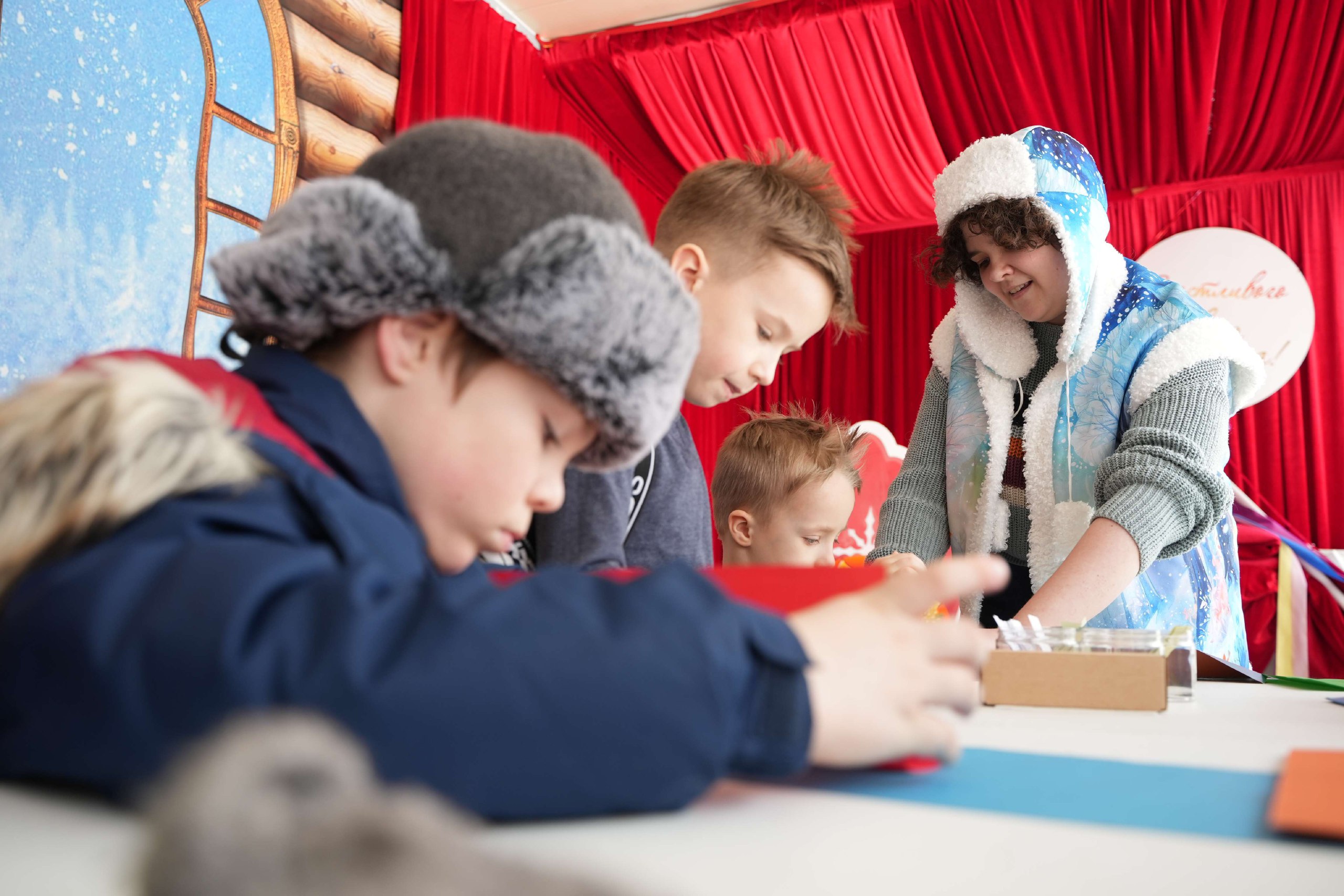 После активной части гости присоединились к мастерклассу «Открытка защитнику», где каждый мог сделать поздравление своими руками. Завершила программу музыкальная разминка «Шуточная строевая» — весёлая, бодрая и понастоящему объединяющая.
