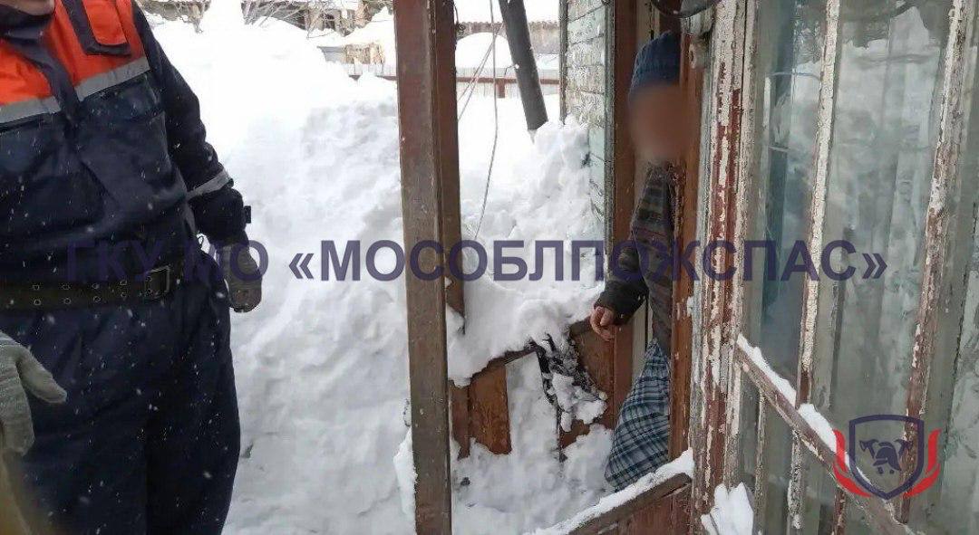 Пенсионерка в Коломне не смогла выйти из дома из-за упавшего с крыши снега.