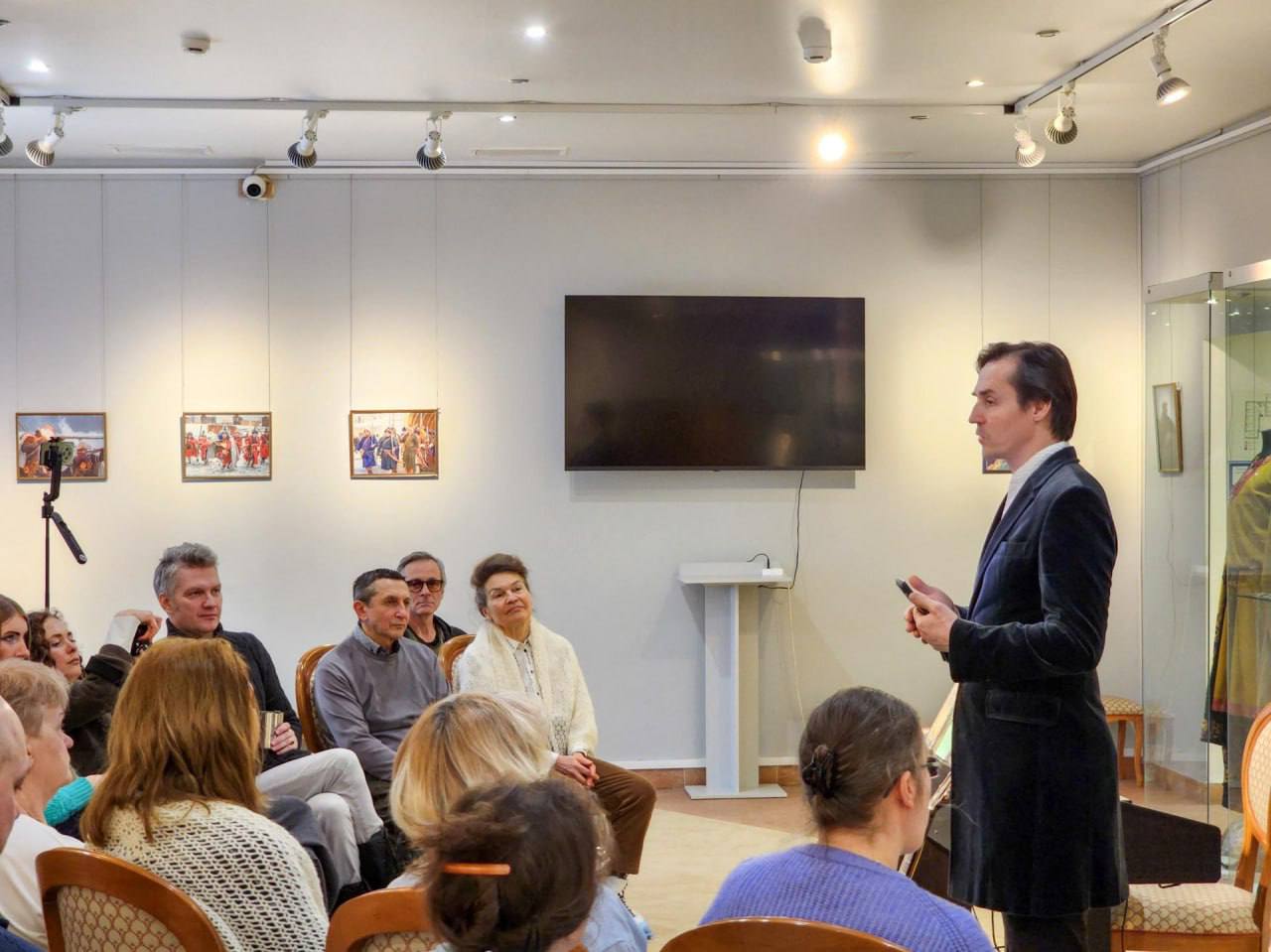 На встрече в литературной гостиной Александра Перепечина в краеведческом музее записали музыкальное видеопоздравление с Днём защитника Отечества. Участники под гитару исполнили песню «На Херсон». Её автор — солист Подольской филармонии Павел Быков — поделился историей создания произведения.