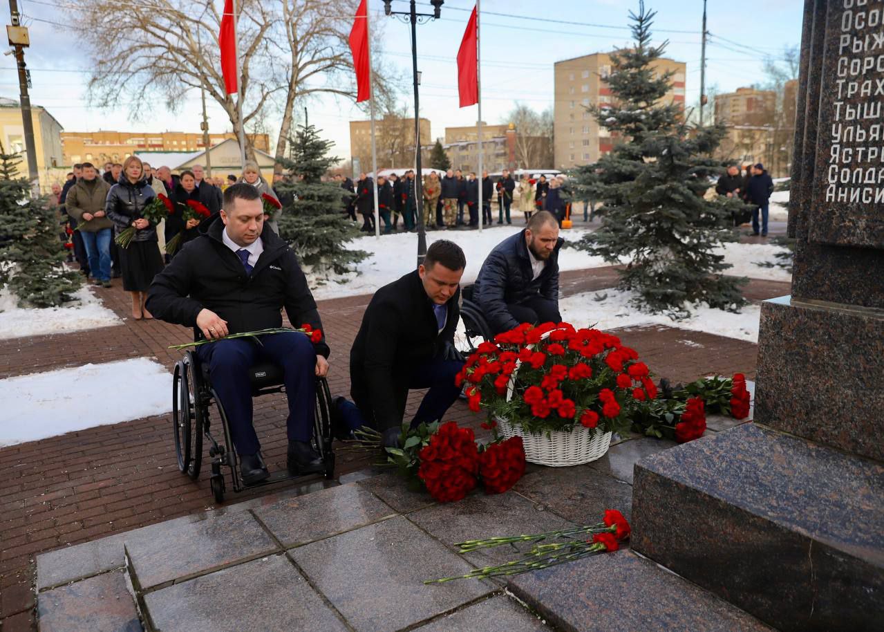 Вместе с Героями — участниками специальной военной операции, вице-губернатором Московской области Марией Николаевной Нагорной, главой городского округа Солнечногорск Константином Александровичем Михальковым, председателем Ассоциации ветеранов СВО Московской области Кириллом Сергеевичем Лосунчуковым, руководителем подмосковного филиала Госфонда «Защитники Отечества» Ольгой Владимировной Ермаковой и депутатом Государственной Думы Федерального Собрания РФ, сопредседателем Ассоциации ветеранов СВО Сергеем Владимировичем Колуновым возложили цветы к мемориалу на Советской улице.