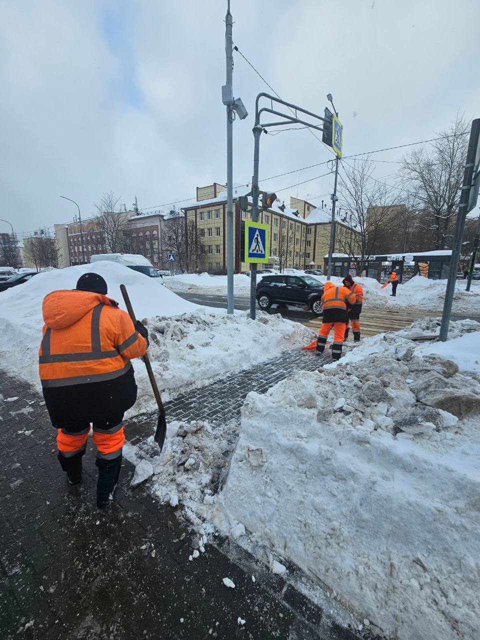 Коммунальные службы Королёва продолжают уборку снега и противогололедную обработку в круглосуточном режиме. Работы выполняются как с помощью специализированной техники, так и вручную. Под особым контролем – центральные автодороги, тротуары, подходы к подъездам и остановкам, входные группы социальных объектов.