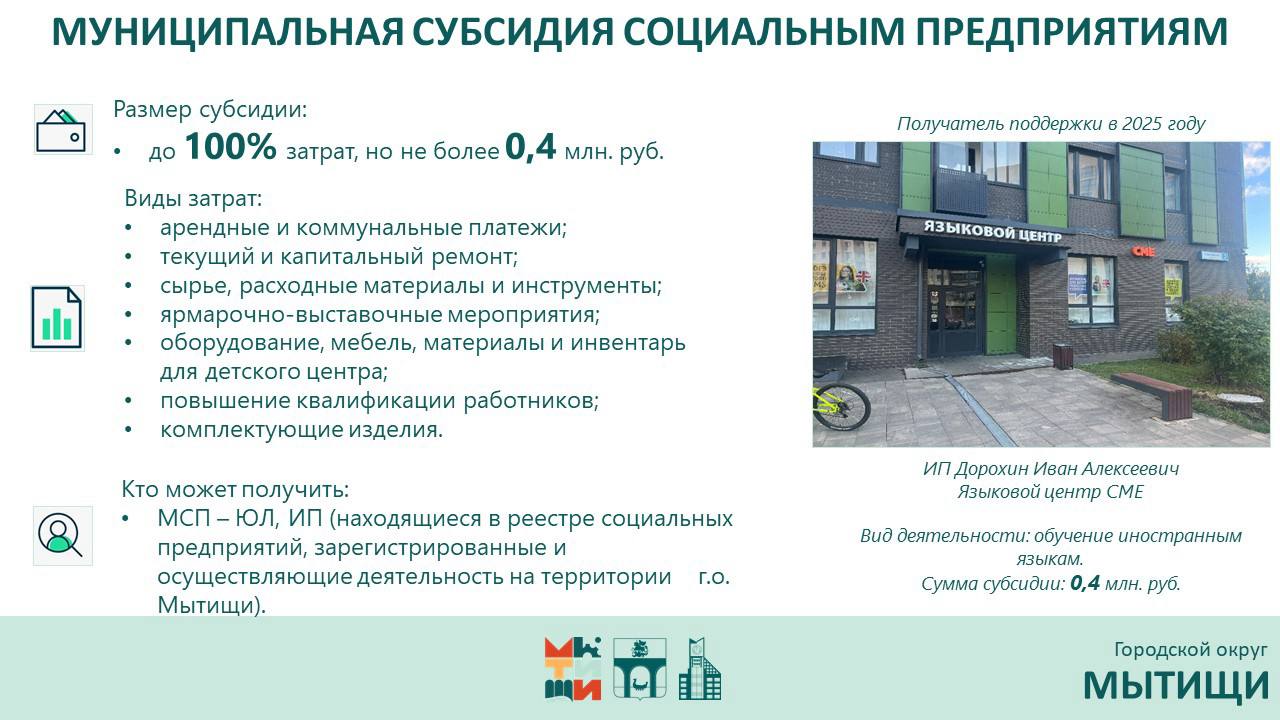 Подробную информацию о мерах поддержки можно получить:управление социально-экономического развития администрации г.о. Мытищи по телефону: 8 (495) 581-61-13, 8 (495) 582-06-35
