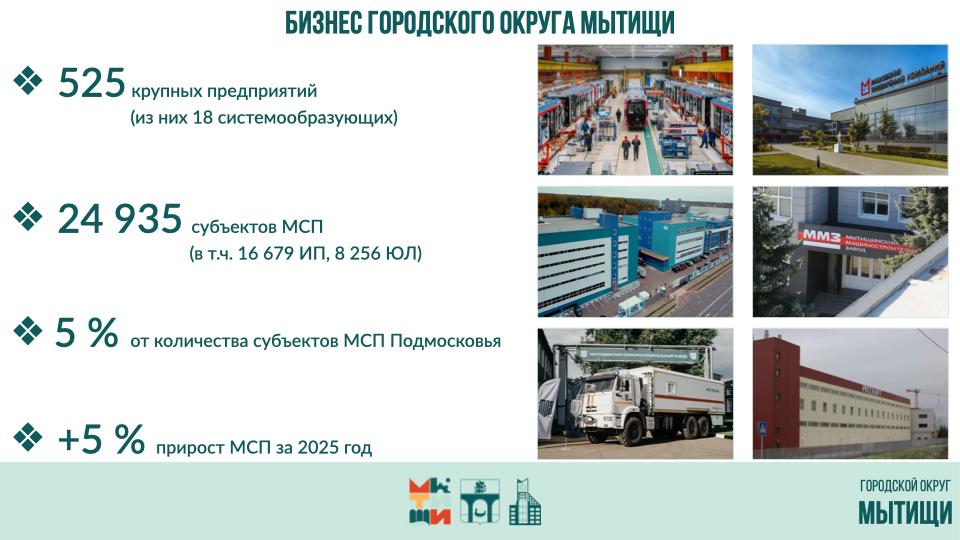 Мытищи стабильно входят в число лучших муниципалитетов по приросту субъектов малого и среднего бизнеса. За 2025 год мы показали динамику – плюс 1242 организации.