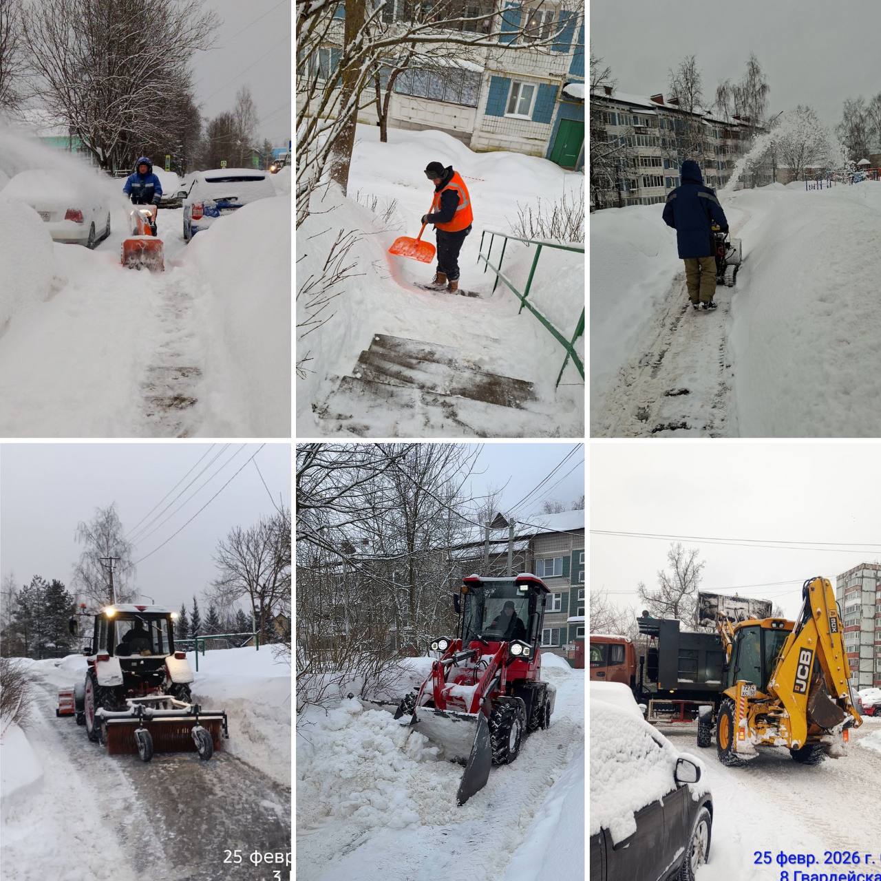 2 Порядка 90 единиц техники, более 20 единиц малой механизации и более 300 сотрудников коммунальных предприятий, УК и подрядных организаций занимаются уборкой дворов и общественных зон.