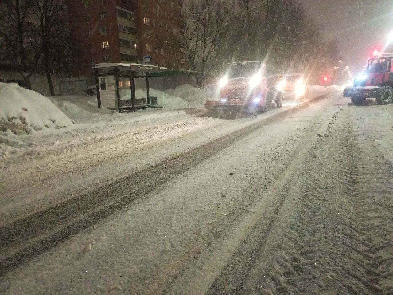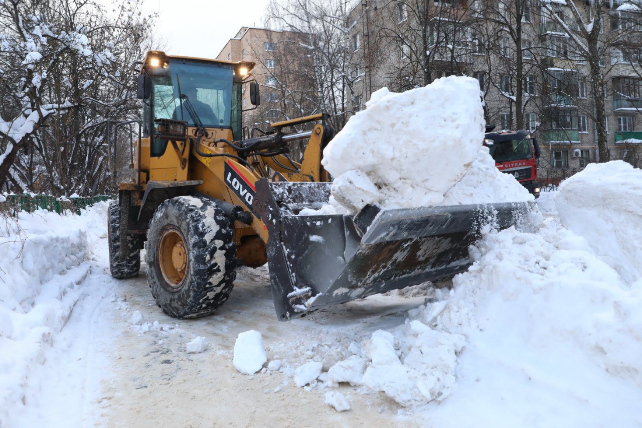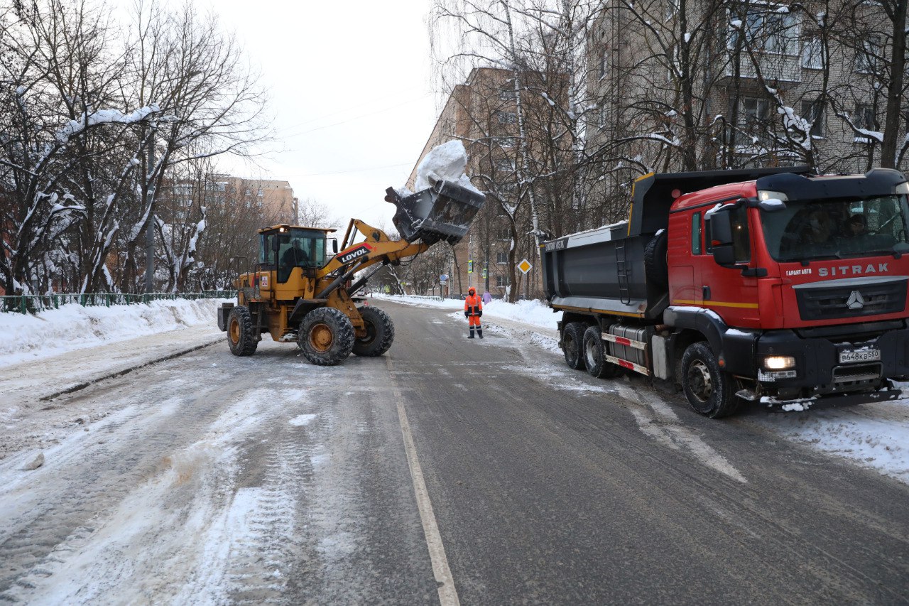 Борьба со снегом: в Долгопрудном дорожные и коммунальные службы не прекращают уборку территорий