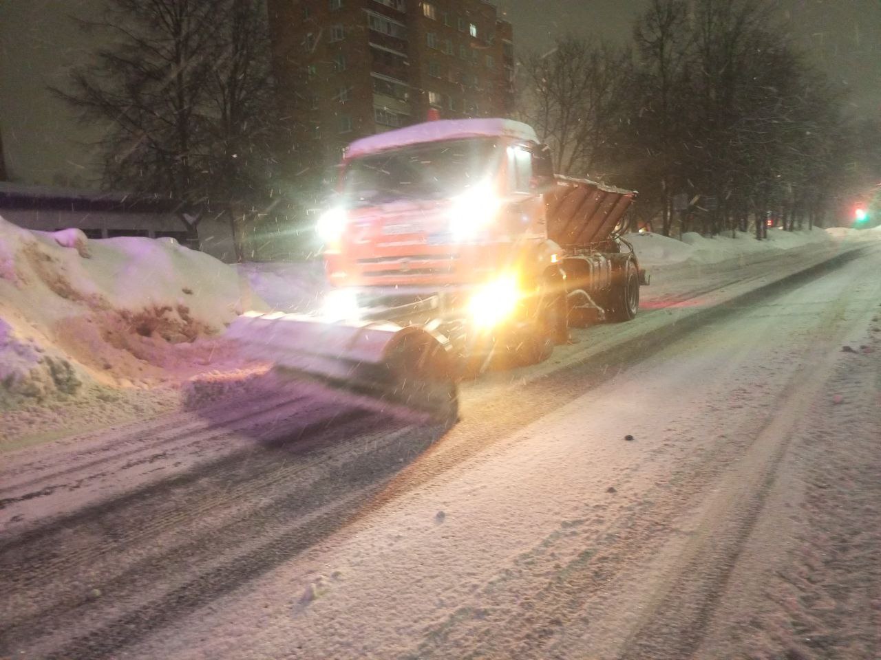 В Долгопрудном дорожные и коммунальные службы практически круглосуточно ведут уборку территорий.