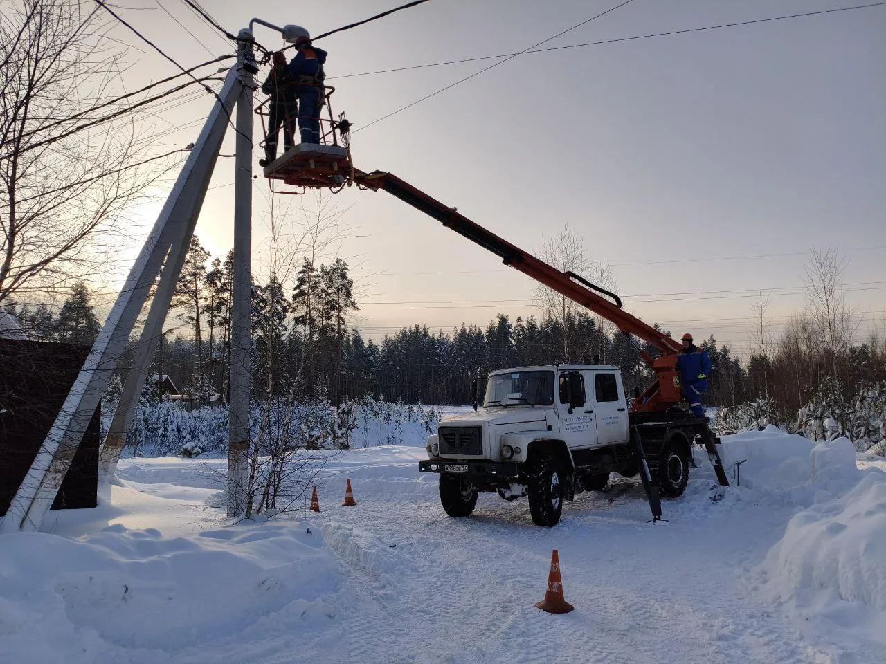 Специалисты построили воздушную линию электропередачи длиной 200 метров - теперь магазин получит надёжное питание мощностью 60 кВт!