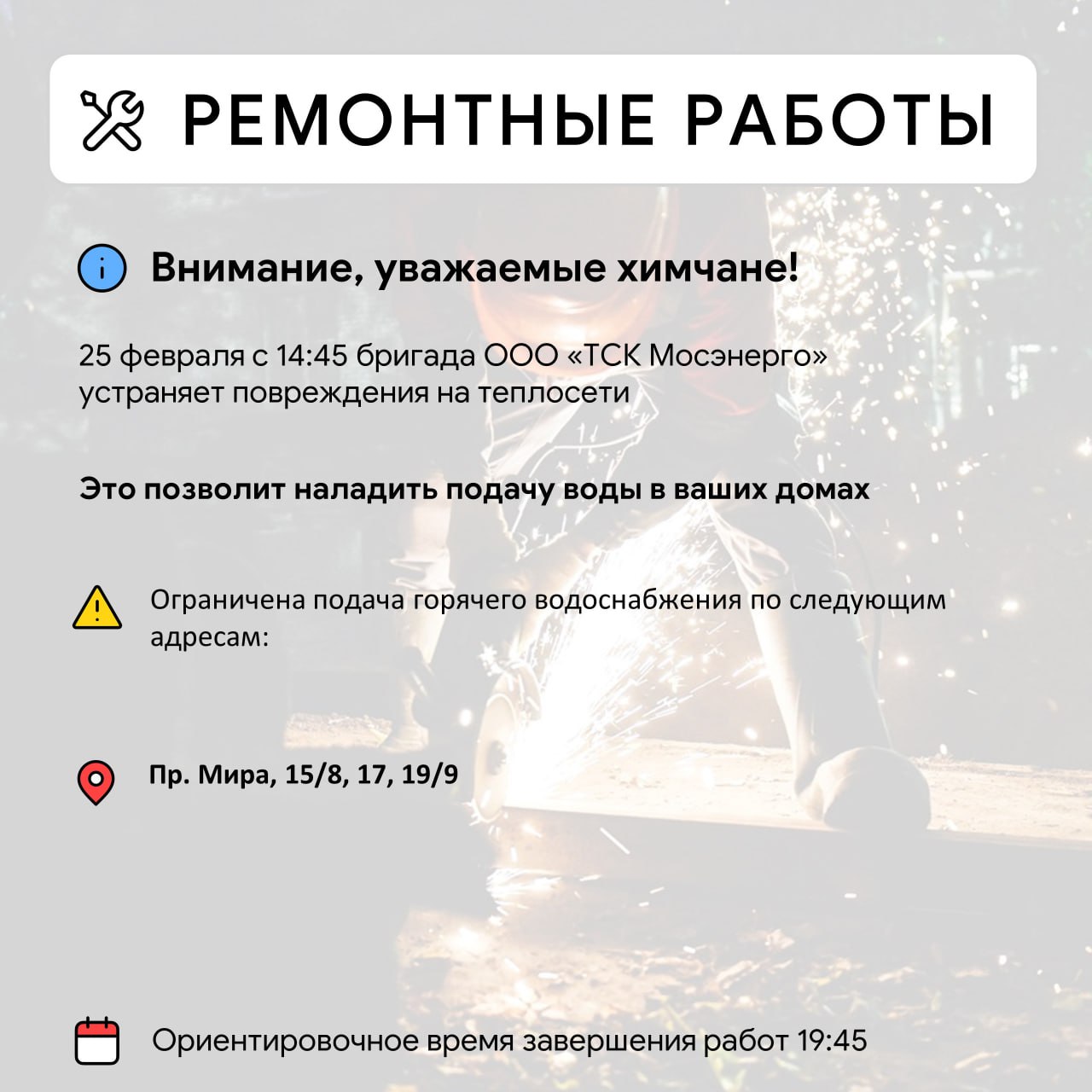 Информацию о работе ресурсоснабжающей организации можно получить по номерам горячей линии: