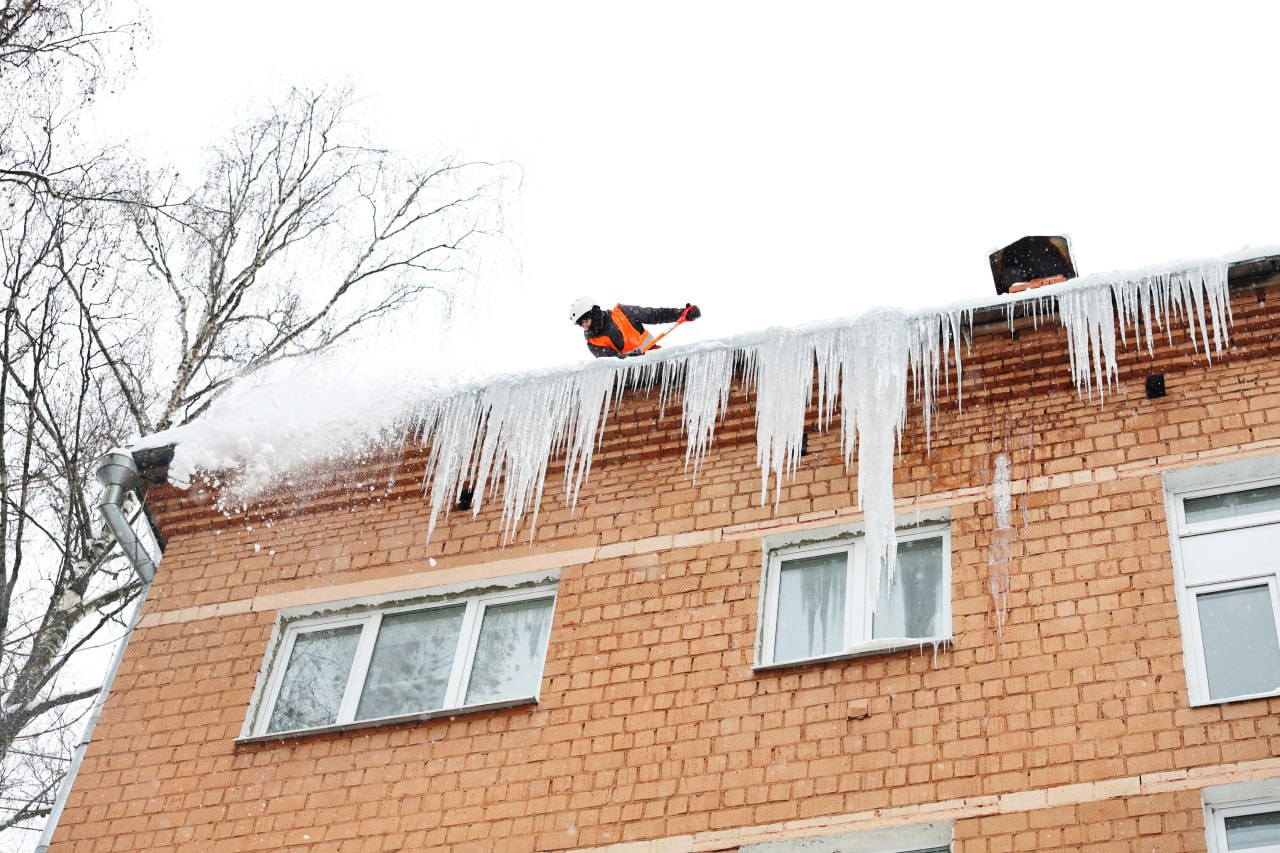 В Мытищах продолжаются масштабные работы по очистке крыш многоквартирных домов от снега