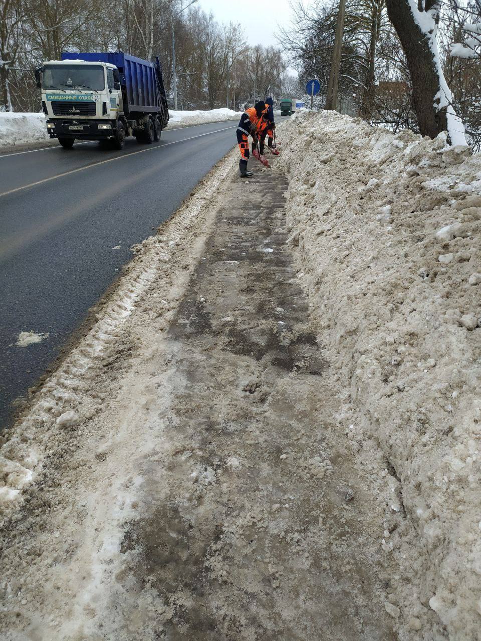 На региональных дорогах округа специалисты «Мосавтодора» очистили от колеи и обледенения проезжую часть в деревнях Савельево и Быково и на Старом Дмитровском шоссе в деревне Шолохово, очистили от снега и наледи тротуары и пешеходные зоны на Пушкинской улице в городе Дмитрове, на Шоссейной улице в посёлке Некрасовский и на Почтовой улице в посёлке Деденево.