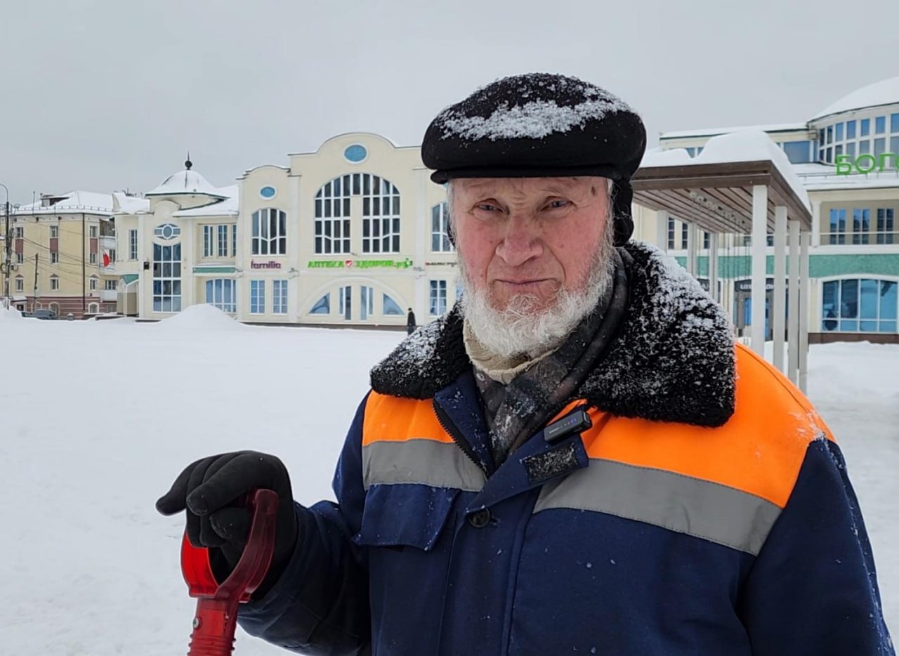 Снег не помеха: 77-летний дворник помогает расчищать улицы в Ногинске