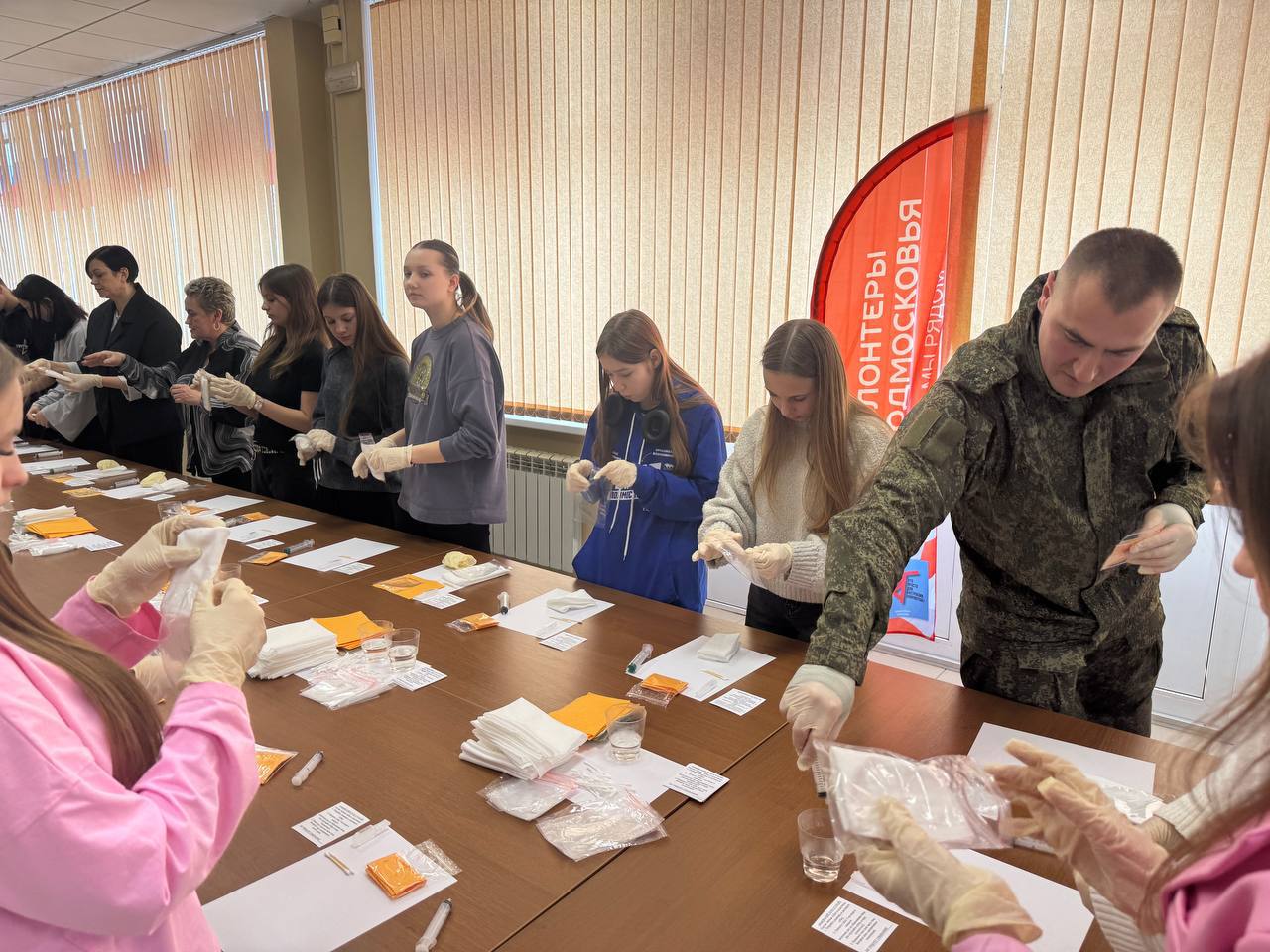 После встречи участники вместе изготовили несколько сотен упаковок сухого душа для бойцов. Небольшой, но важный вклад в общее дело поддержки наших военнослужащих.