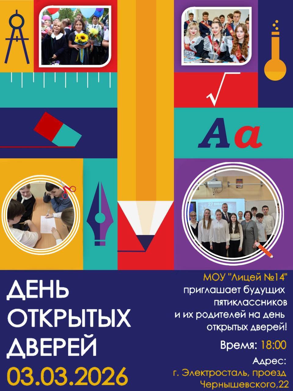 3 марта лицей № 14 приглашает будущих пятиклассников и их родителей на День открытых дверей.