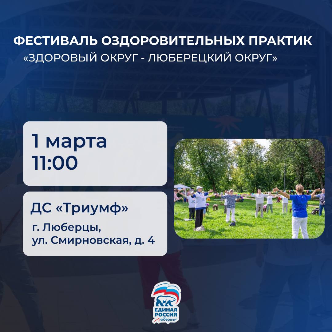 «Единая Россия» проведет Семейный фестиваль оздоровительных практик «Здоровый округ — Люберецкий округ»