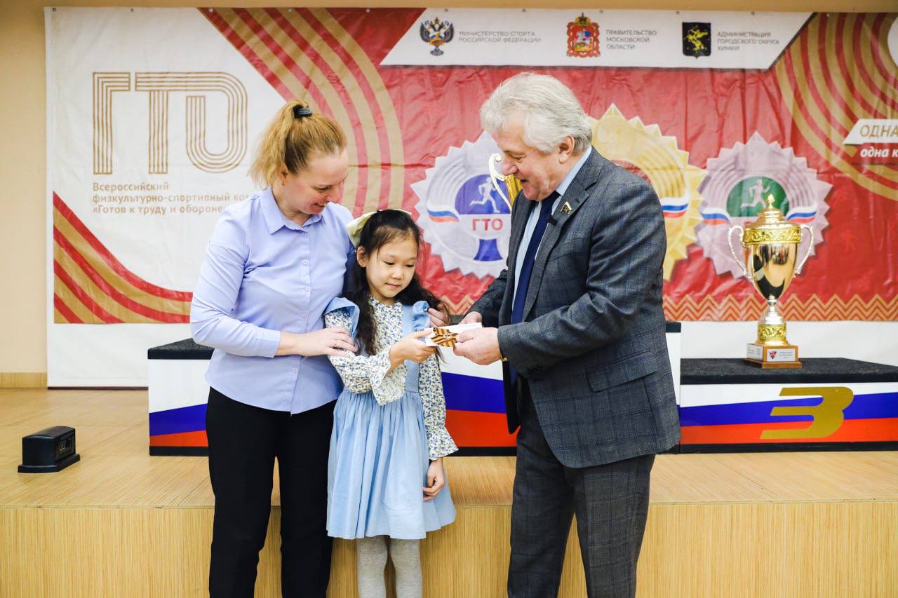 Торжественное награждение знаками отличия ГТО провёл депутат Химок, заслуженный работник физической культуры, спорта и туризма Московской области Валентин Герасимов.