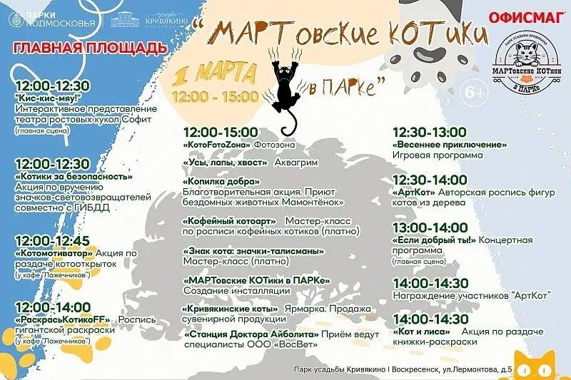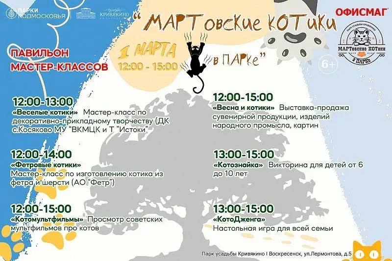 1 марта в парке усадьбы Кривякино состоится весенний праздник «МАРТовские КОТики в ПАРКе», посвященный Дню кошек.