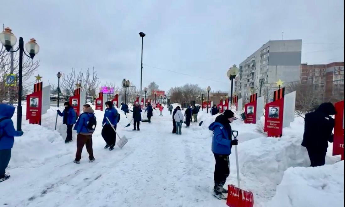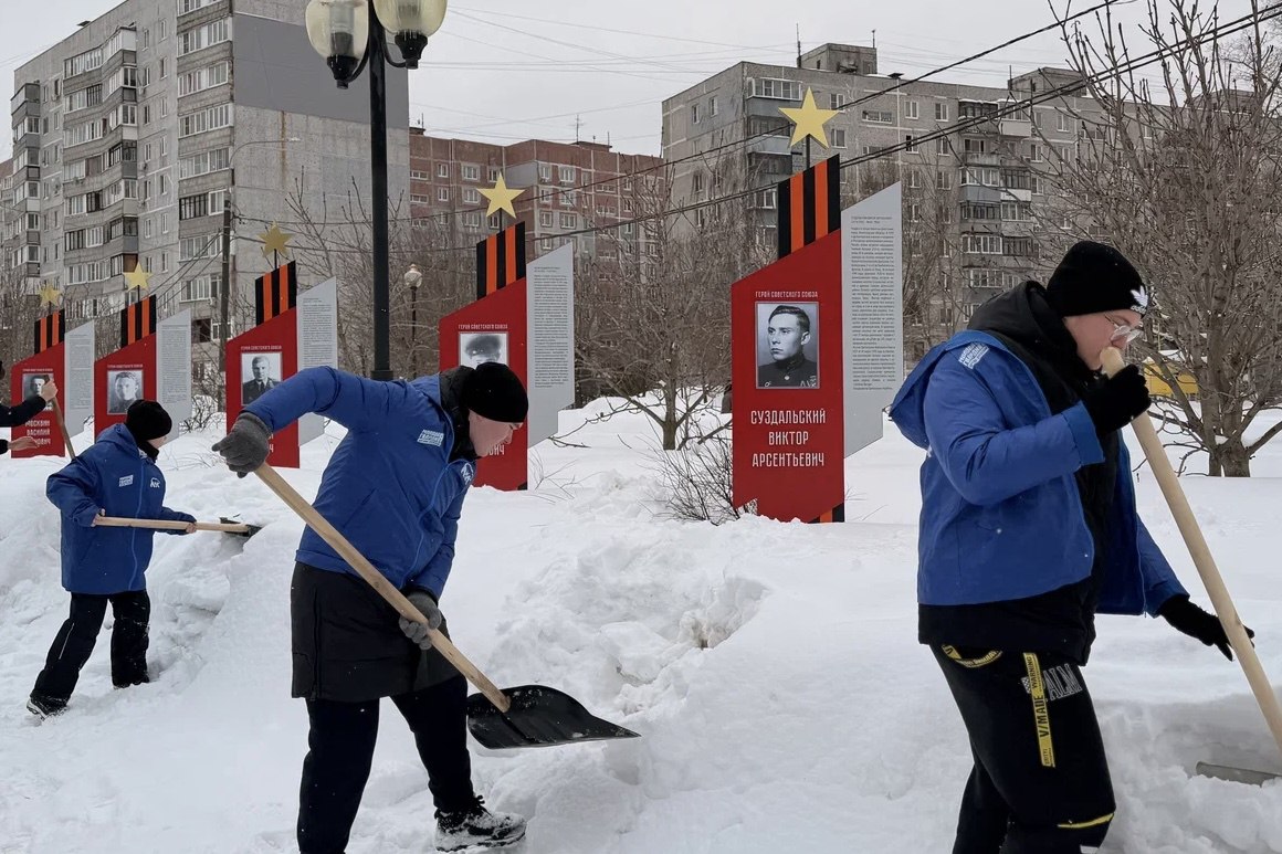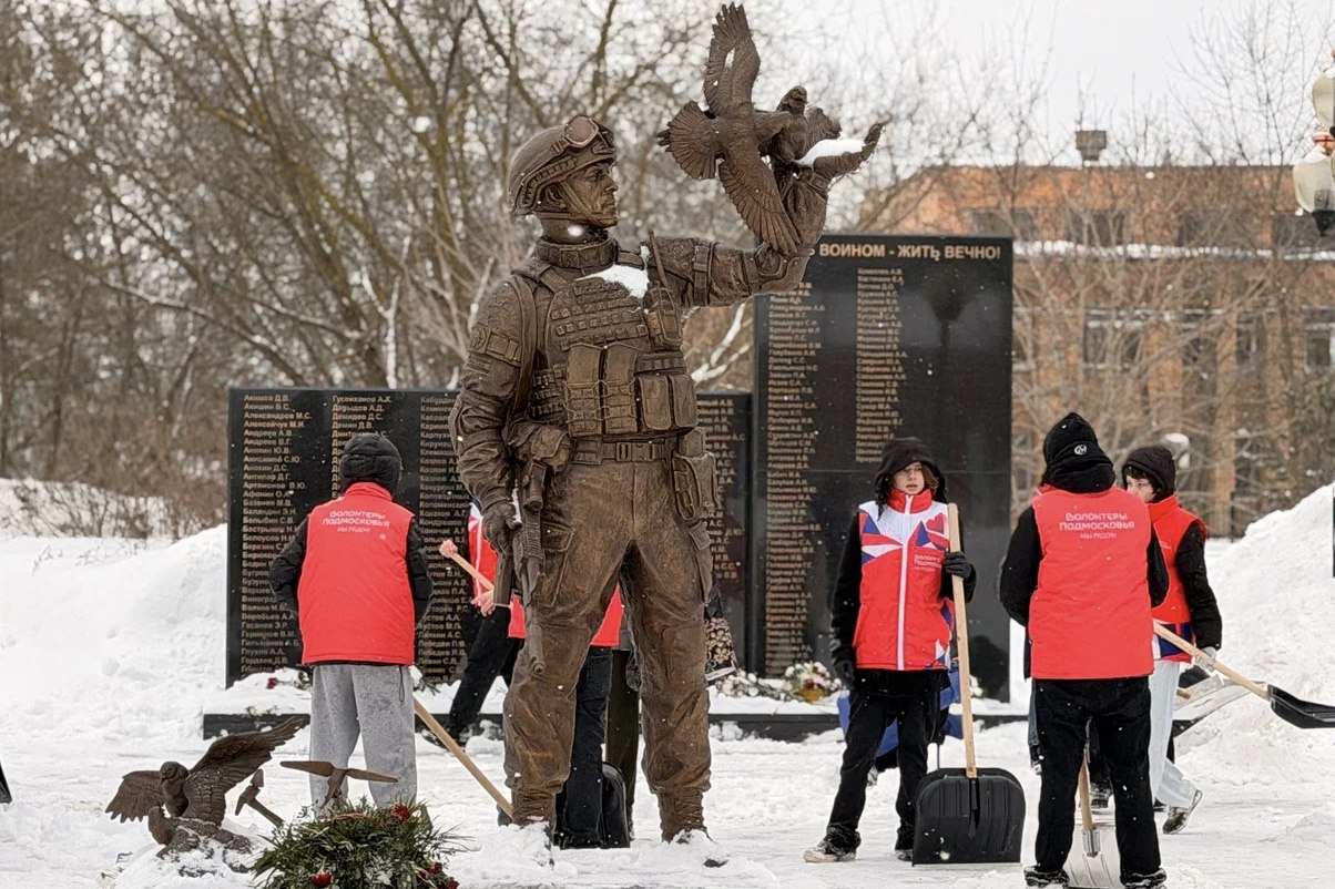 На этот раз ребята очистили от снега территорию у памятника участникам специальной военной операции в Орехово-Зуеве.