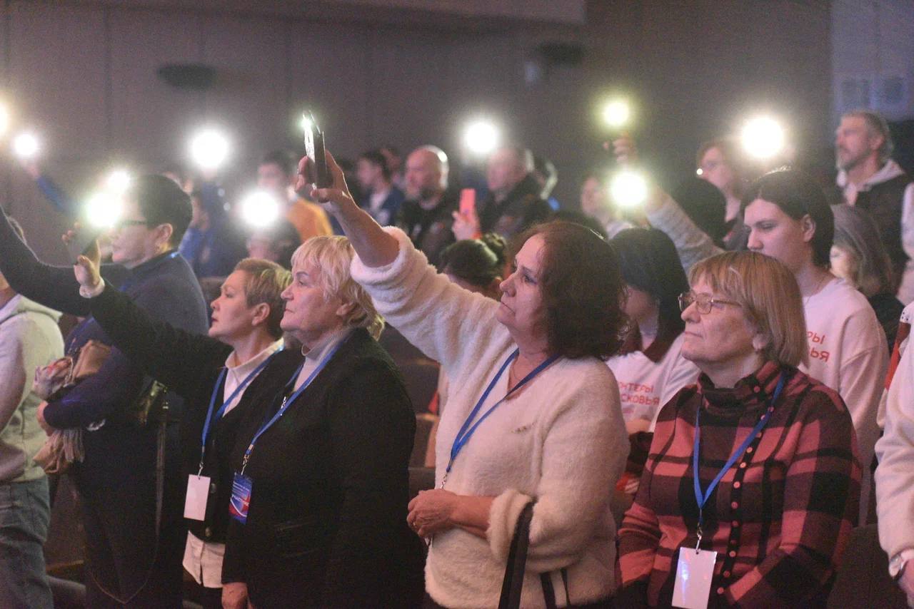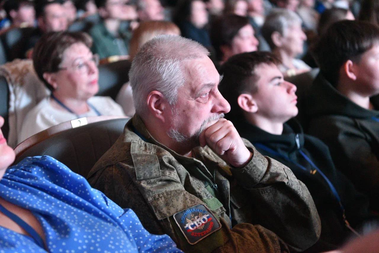 В этом году на сцену вышли участники специальной военной операции, волонтёры, члены семей защитников Отечества. Их выступления стали самой сильной эмоциональной частью фестиваля. В зале - ветераны СВО, семьи бойцов со всей Московской области.