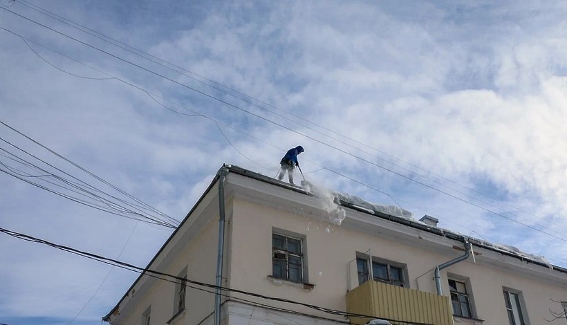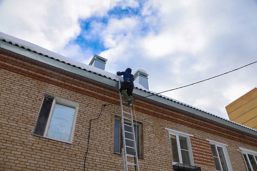 Специалисты управляющих компаний приводят в порядок кровли после температурных колебаний, чтобы обеспечить безопасность прохожих.