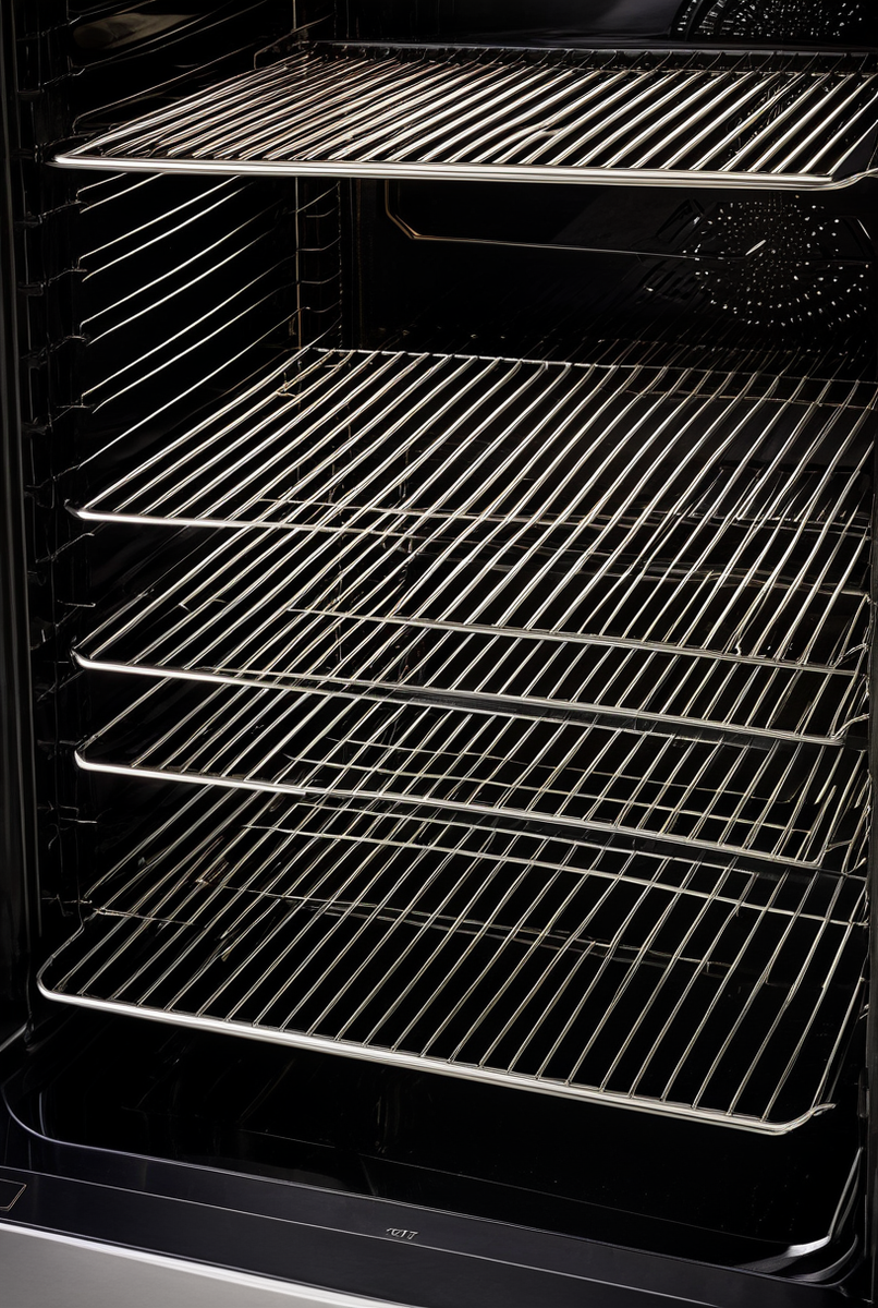 Решетка или поддон на телескопических направляющих позволяют без труда извлекать даже тяжелые блюда, особенно полезно при использовании режима гриль.