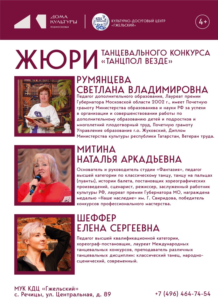 Весна в нашем округе начнется в ритме танца! Культурно-досуговый центр «Гжельский» при поддержке Комитета по культуре и туризму приглашает талантливых жителей принять участие в открытом фестивале-конкурсе «Танцпол везде». Это событие призвано объединить любителей хореографии, создать площадку для творческого роста и подарить зрителям настоящий праздник движения и энергии.
