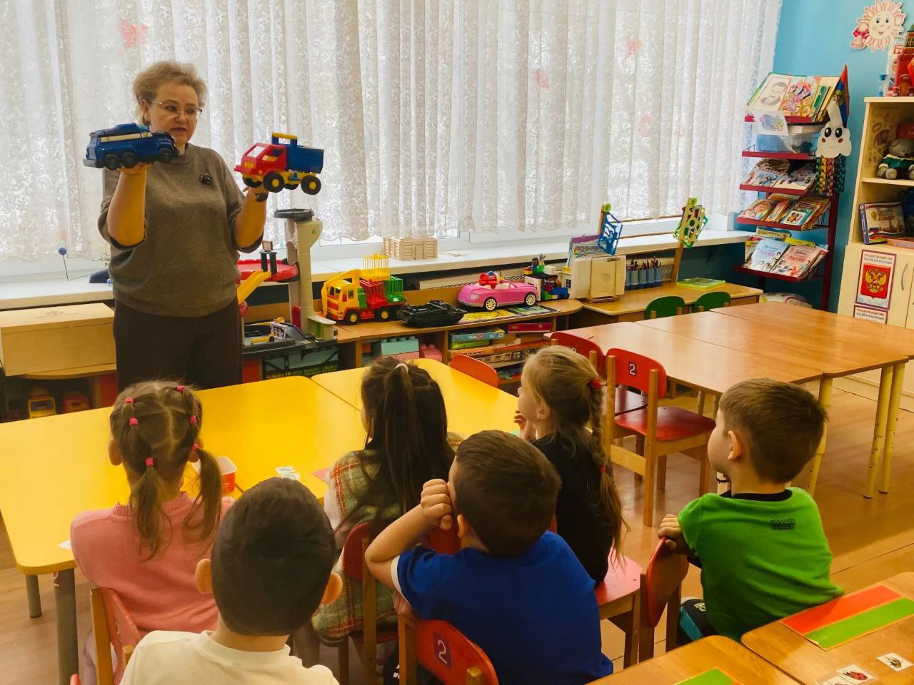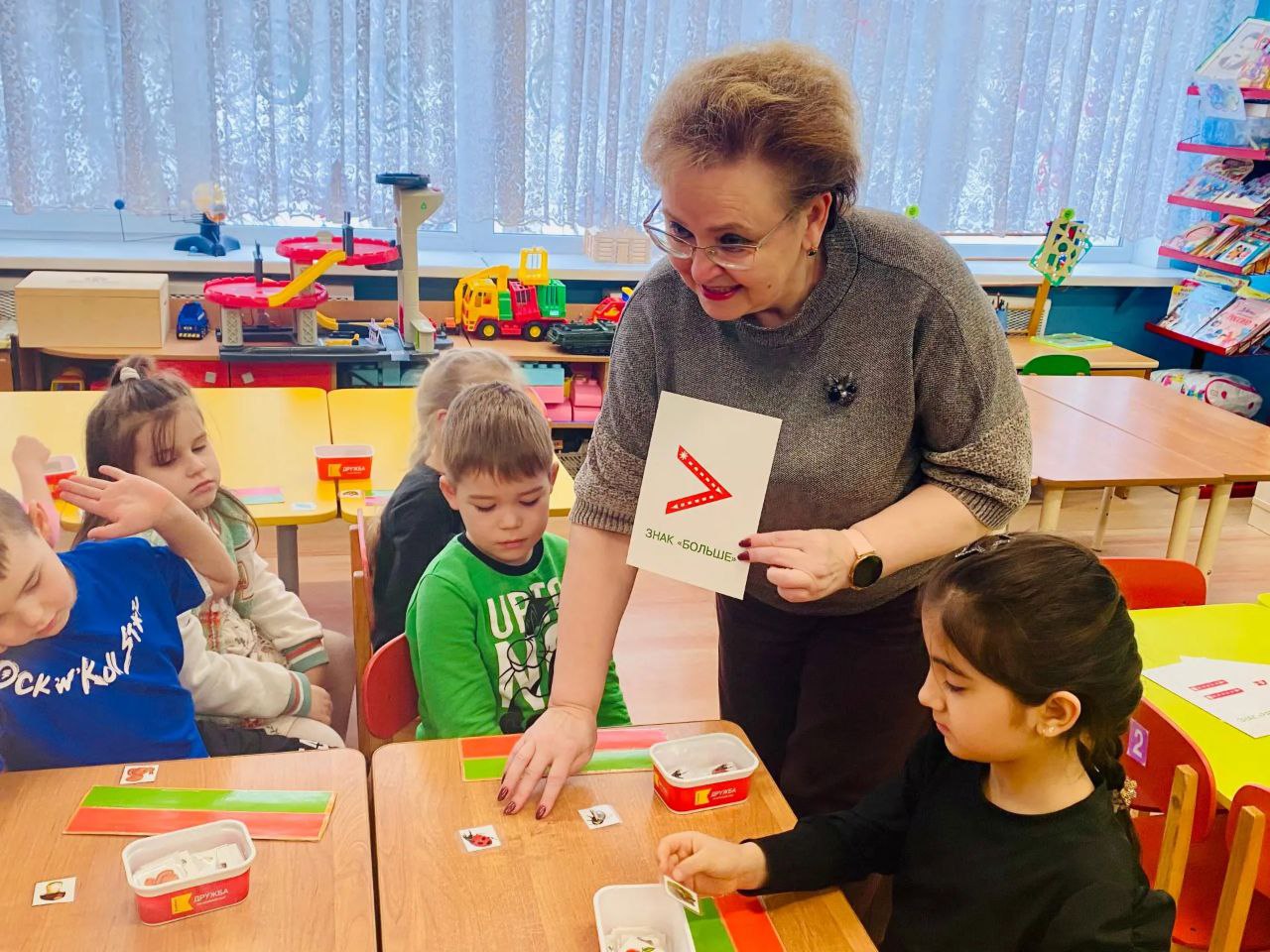 Дошколята вместе с учителем изучали формы, цвета и размеры, решали простые задачки на сложение и вычитание, используя счётные палочки и игрушки. Всё было подано в игровой форме, что позволило не только учиться, но и весело проводить время. Такие уроки помогают легко и с удовольствием входить в мир математики, делая обучение интересным и эффективным.