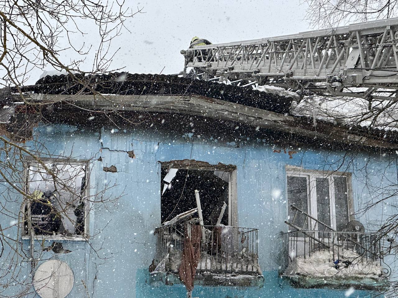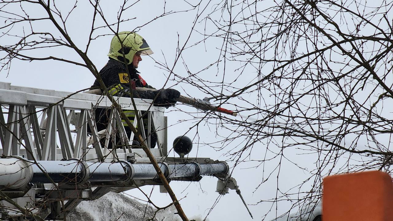 Спасатели продолжают проливку конструкций и разбор завалов. Угроза распространения огня отсутствует.