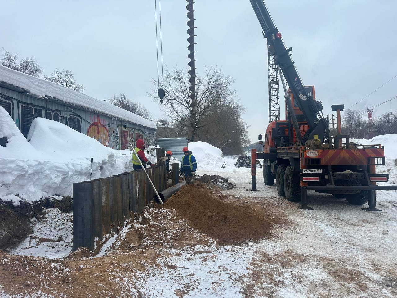 На стройплощадке надземного пешеходного перехода у ст. Подлипки-Дачные в Королёве приступили к погружению шпунтового ограждения.