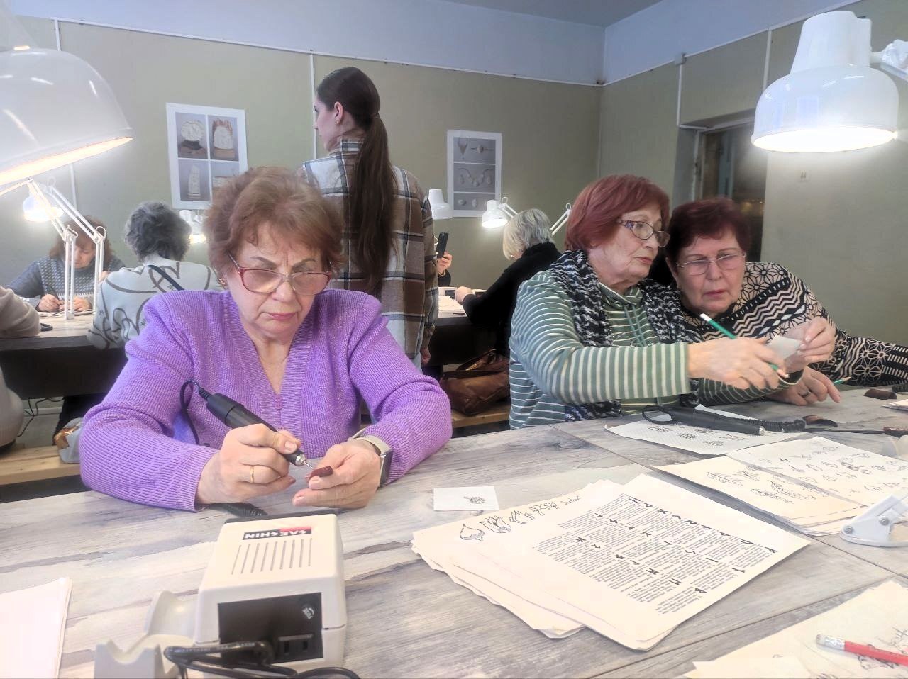 Участники экскурсии побывали и на уникальной Хотьковской фабрике резных художественных изделий, где мастера-косторезы изготавливают прекрасные изделия из кости мамонта. Конечно, всем им надолго запомнится мастер-класс, во время которого они самостоятельно наносили изображения на костяную заготовку.