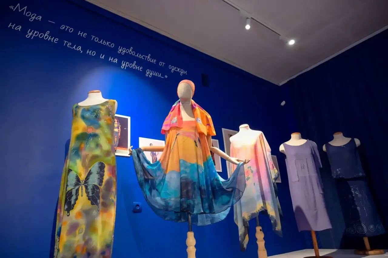Посетители могут увидеть изделия из разных коллекций дизайнера: «Шифон, живопись, графика в одежде», «О море! Море!», «Насекомые как дизайн», «На стихи О. Хайяма», «Графика на шифоне», «Черный трикотаж и дырки».
