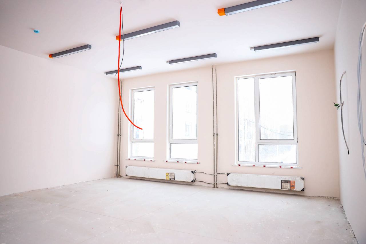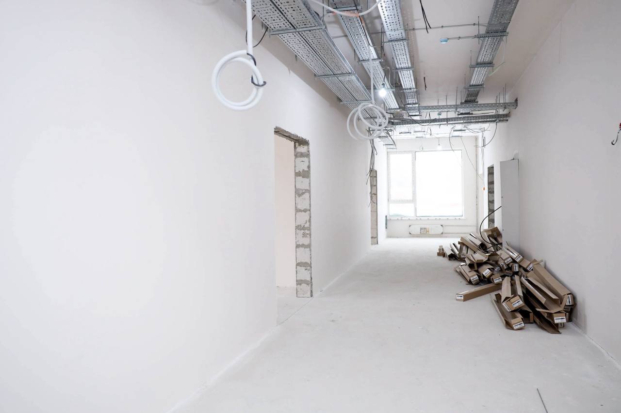 На сегодняшний день фасады готовы на 95%. Внутри здания завершены основные работы по подключению инженерных систем, запущено отопление, смонтировано лифтовое оборудование. Ведутся чистовая отделка и устройство слаботочных систем.