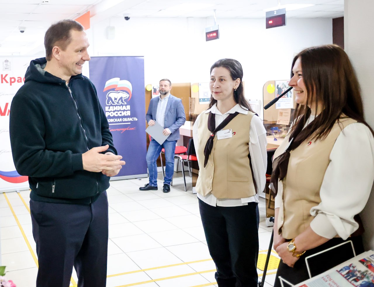 Встретился с коллективом офиса Многофункционального центра «Ильинское» в поселке Мечниково, отметившего в прошлом году десятилетие с момента открытия.