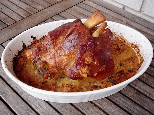 После двух часов запекания перейдите к финалу. В новую форму уложите капусту в равномерный слой, а сверху — ароматную рульку. Поставьте форму обратно в духовку ещё на 1,5-2 часа, периодически поливая рульку образовавшейся жидкостью. Так она получится ещё более нежной и сочной.