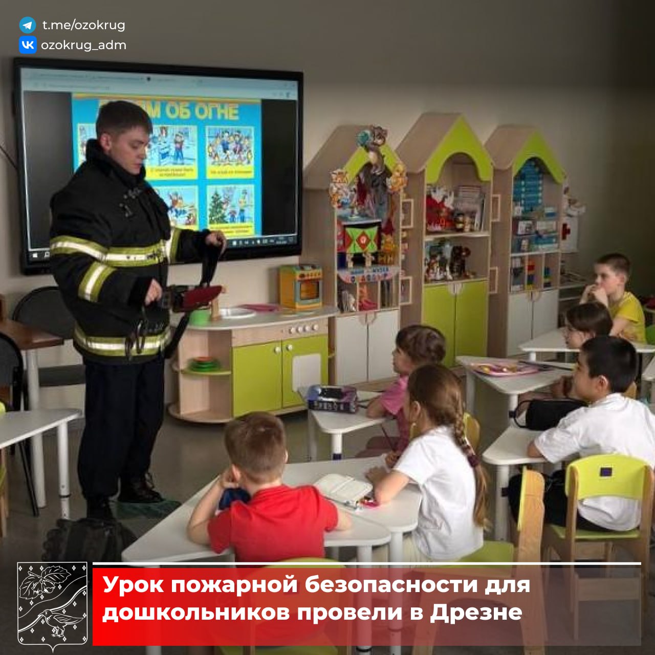 Работники 248-й пожарно-спасательной части ГКУ МО «Мособлпожспас» провели урок безопасности для дошколят Дрезны.