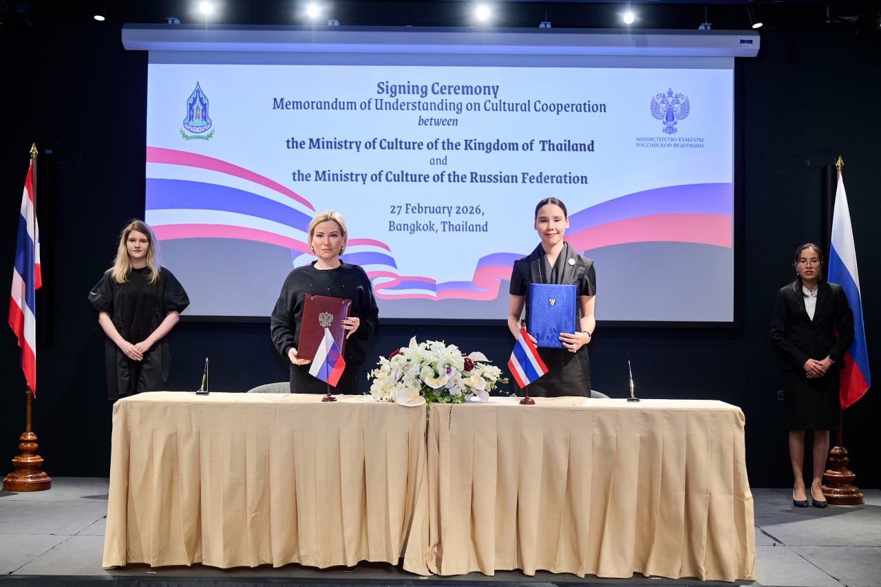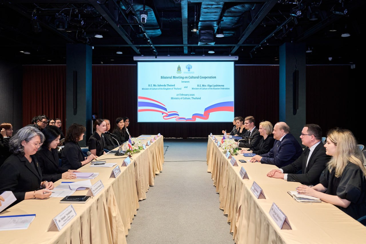 27 февраля 2026 года в Таиландском культурном центре в г. Бангкоке состоялась торжественная церемония открытия флагманского международного проекта Министерства культуры России — #РусскиеСезоны. Участие в мероприятии приняли Министр культуры России О.Б.Любимова, Посол России в Таиланде Е.Ю.Томихин.