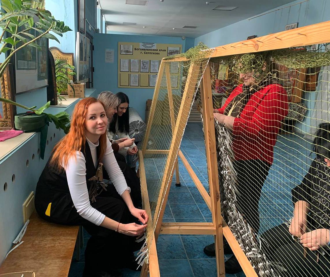 Центр по профориентации и трудоустройству молодёжи во главе с директором учреждения и председателем Совета сторонников партии «Единая Россия» Надеждой Ерёминой посетил волонтерский цех «Добрые Руки», действующий при Богоявленском храме. В рамках визита активисты приняли участие в плетении маскировочных сетей — одной из наиболее востребованных позиций в зоне проведения специальной военной операции.
