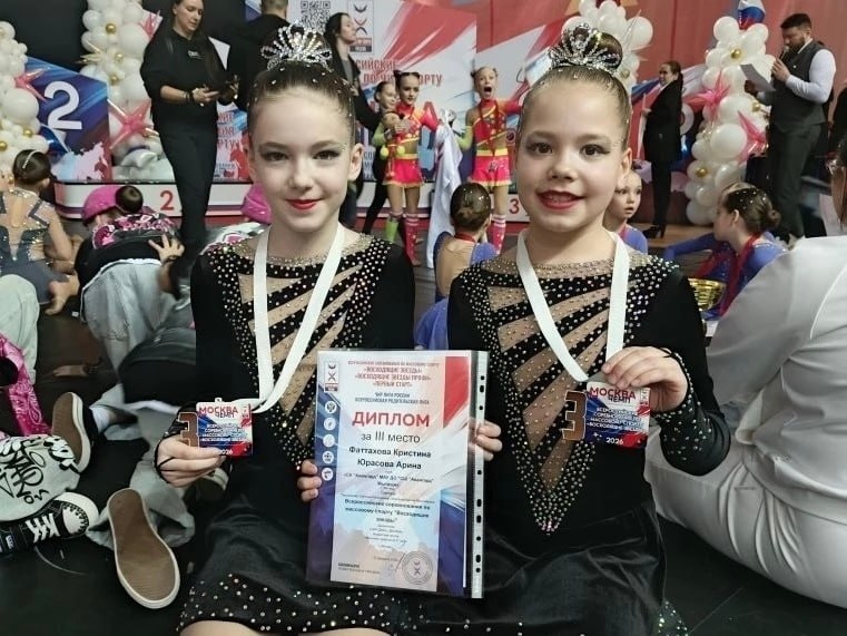 В категории «Восходящие звезды» в номинации «чир-джаз-двойка» бронзовые медали завоевали Кристина Фаттахова и Арина Юрасова.