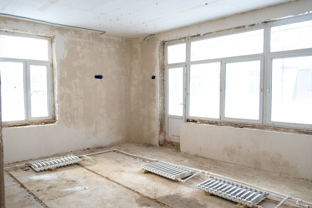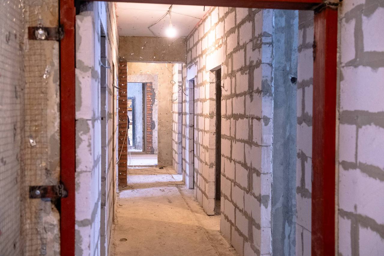 Демонтаж завершён. Сейчас основные силы направлены на устройство инженерных сетей, входных групп, внутренних перегородок, подготовку к монтажу коммуникаций и штукатурные работы. На объекте работают 32 человека. Темп хороший, подрядчик график выдерживает.