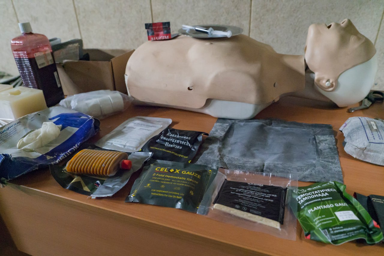 Первый блок занятий состоял из теоретической части, изучению правил эвакуации раненых из зон различной степени риска, а также алгоритму первичного осмотра пострадавшего. Участники сборов освоили методы экстренного обезболивания и детально разобрали комплектации современных индивидуальных аптечек и групповых медицинских средств.