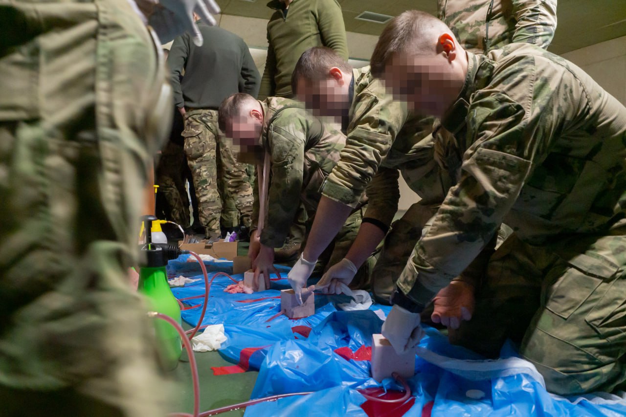 Кроме того, росгвардейцы детально отработали приемы самопомощи и взаимопомощи при массивных кровотечениях, включая технику тампонады ран и использование различных типов жгутов. Программа первой части занятий также включала закрепление навыков восстановления проходимости дыхательных путей и оказания помощи при проникающих ранениях грудной клетки с применением окклюзионных пластырей и декомпрессионных игл.
