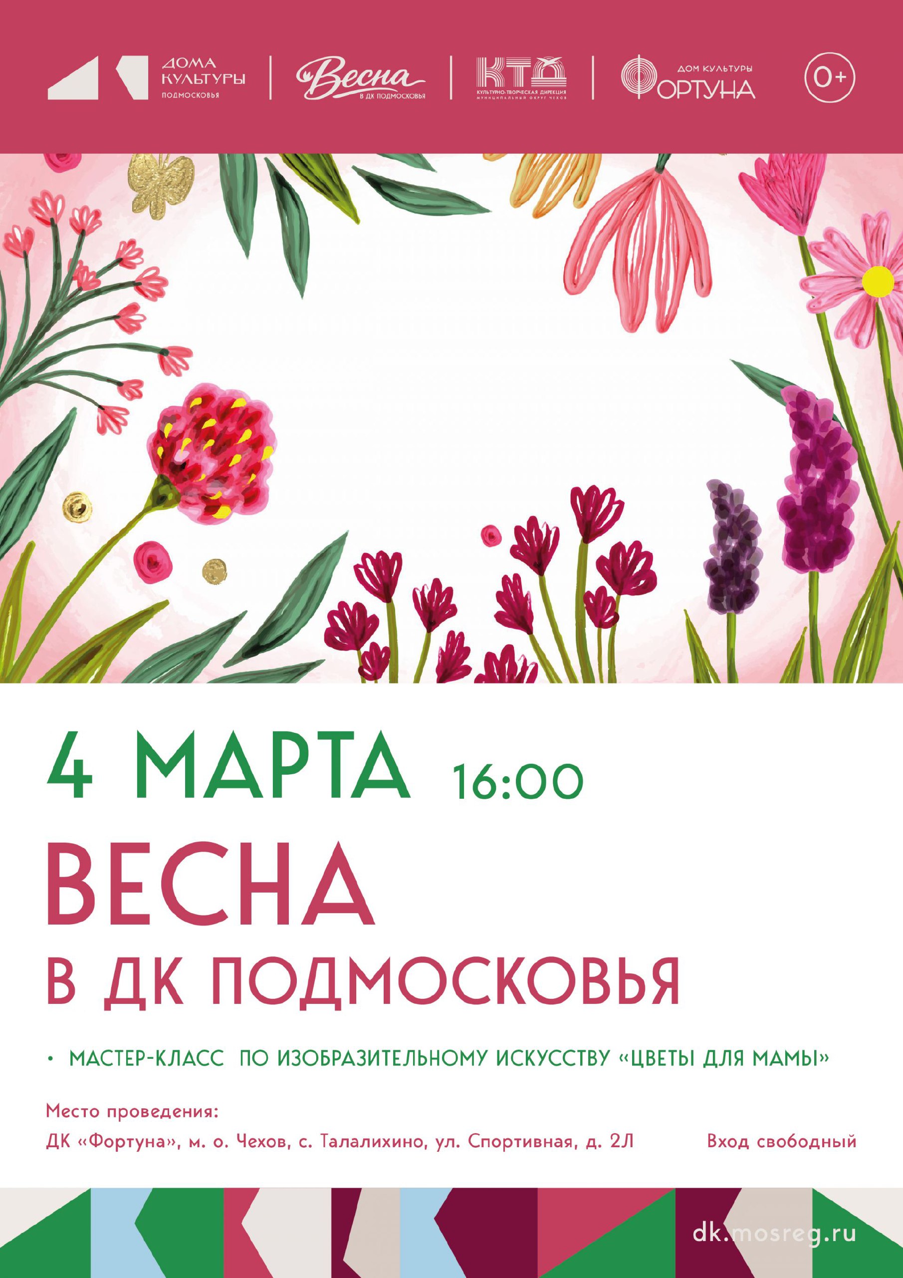 Приглашаем детей на мастер-класс «Цветы для мамы» в ДК «Фортуна» м.о. Чехов