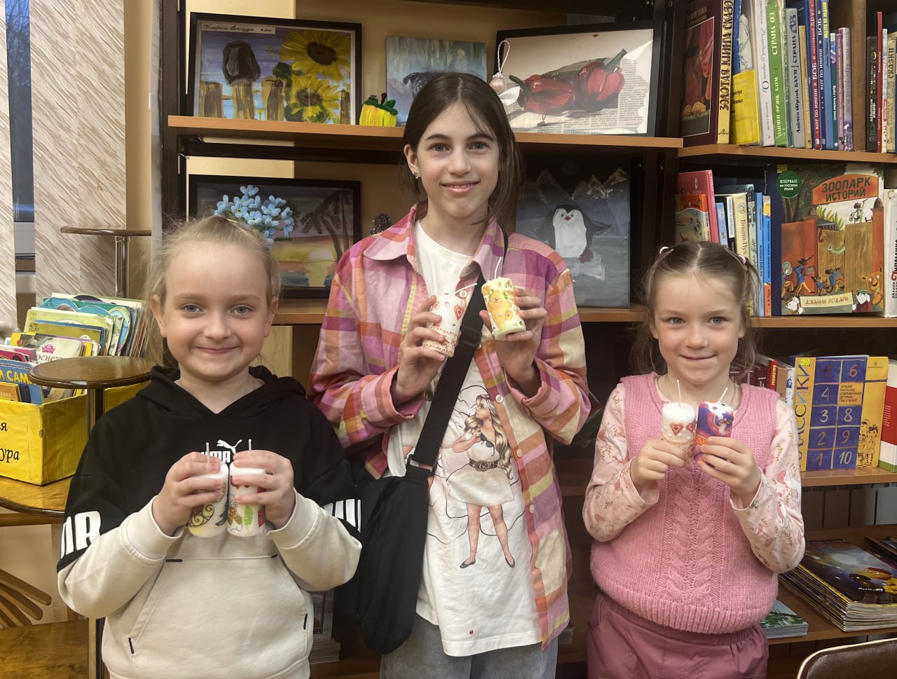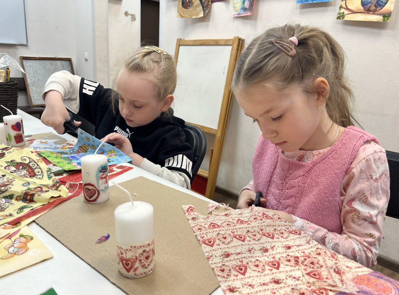 В Крюковской библиотеке состоялся мастер-класс, где юные художники осваивали технику декупажа для декорирования свечей