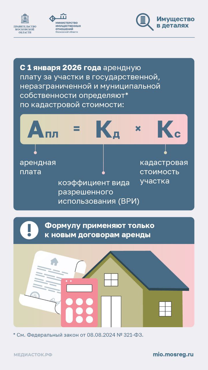 Определение арендной платы на основе кадастровой стоимости – распространённая практика во многих странах. Она позволяет устанавливать экономически обоснованные ставки, учитывая рыночную стоимость недвижимости. С 1 января 2026 года арендная плата за государственные и муниципальные земельные участки определяется исходя из их кадастровой стоимости. Исключение составляют аукционные договоры и отдельные случаи, регулируемые федеральным законом. Подробнее - в наших инфокарточках