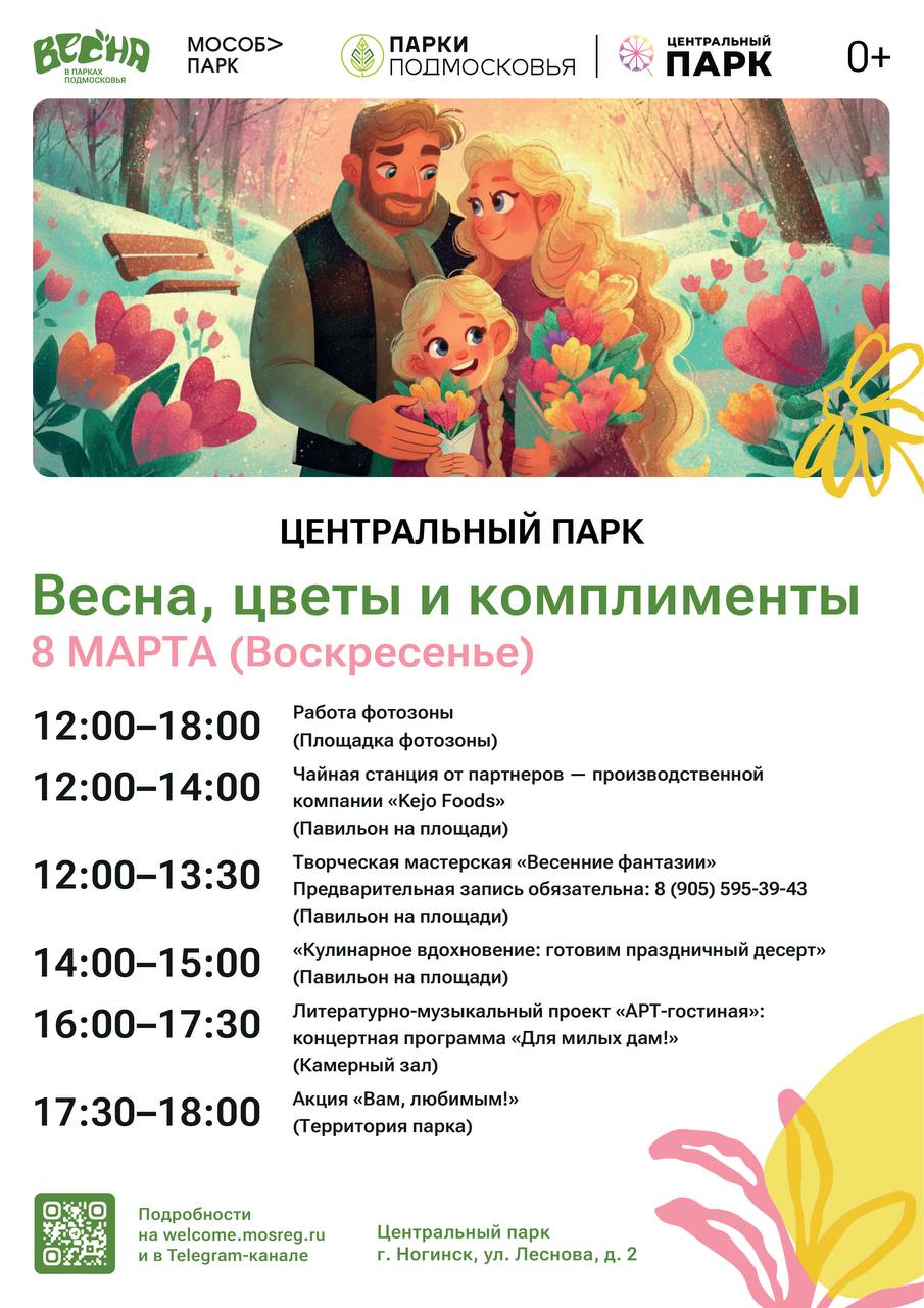 Богородские парки приглашают отпраздновать Международный женский день 8 марта вместе!