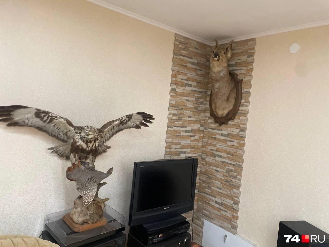 Пока суды идут в закрытом режиме, в Сеть утекли кадры из роскошного дома главного санитарного врача области. Интерьер там украшают охотничьи трофеи в виде чучел животных, винный погреб и весьма специфический портрет самого хозяина. Никого он вам не напоминает?