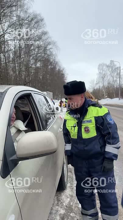 Возле Центрального парка сотрудники Госавтоинспекции МУ МВД России «Ногинское» вместе с 5 батальоном 2 полка ДПС ГИБДД ГУ МВД России по Московской области останавливают девушек.