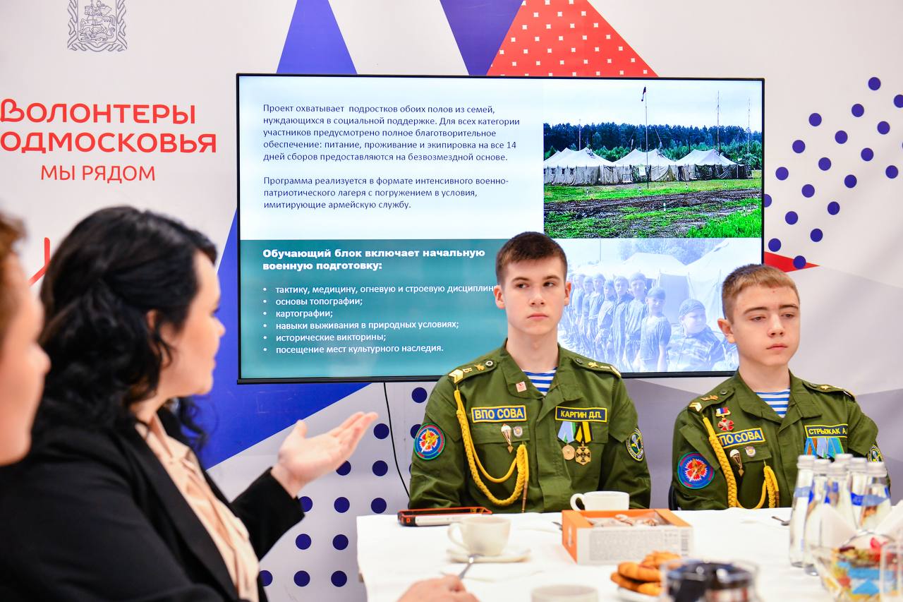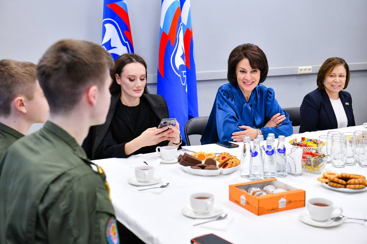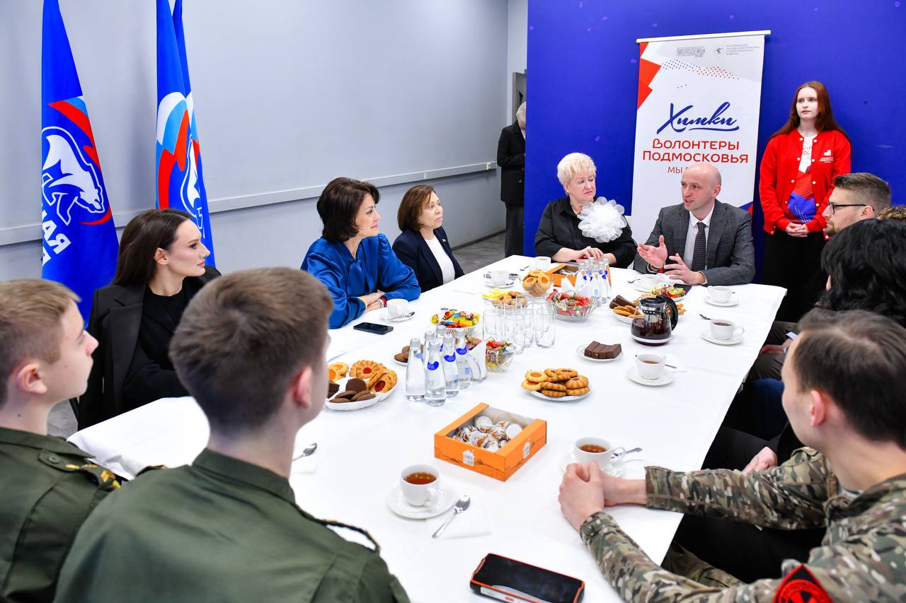 В ресурсном центре «Волонтёры Подмосковья» глава Химок Инна Федотова вместе с депутатом Государственной Думы Ириной Родниной, лидером Движения общественной поддержки Николаем Томашовым и депутатом местного Совета Надеждой Смирновой провели встречу с руководителем и воспитанниками военно-патриотической организации «Сова» имени Дмитрия Кириллова.