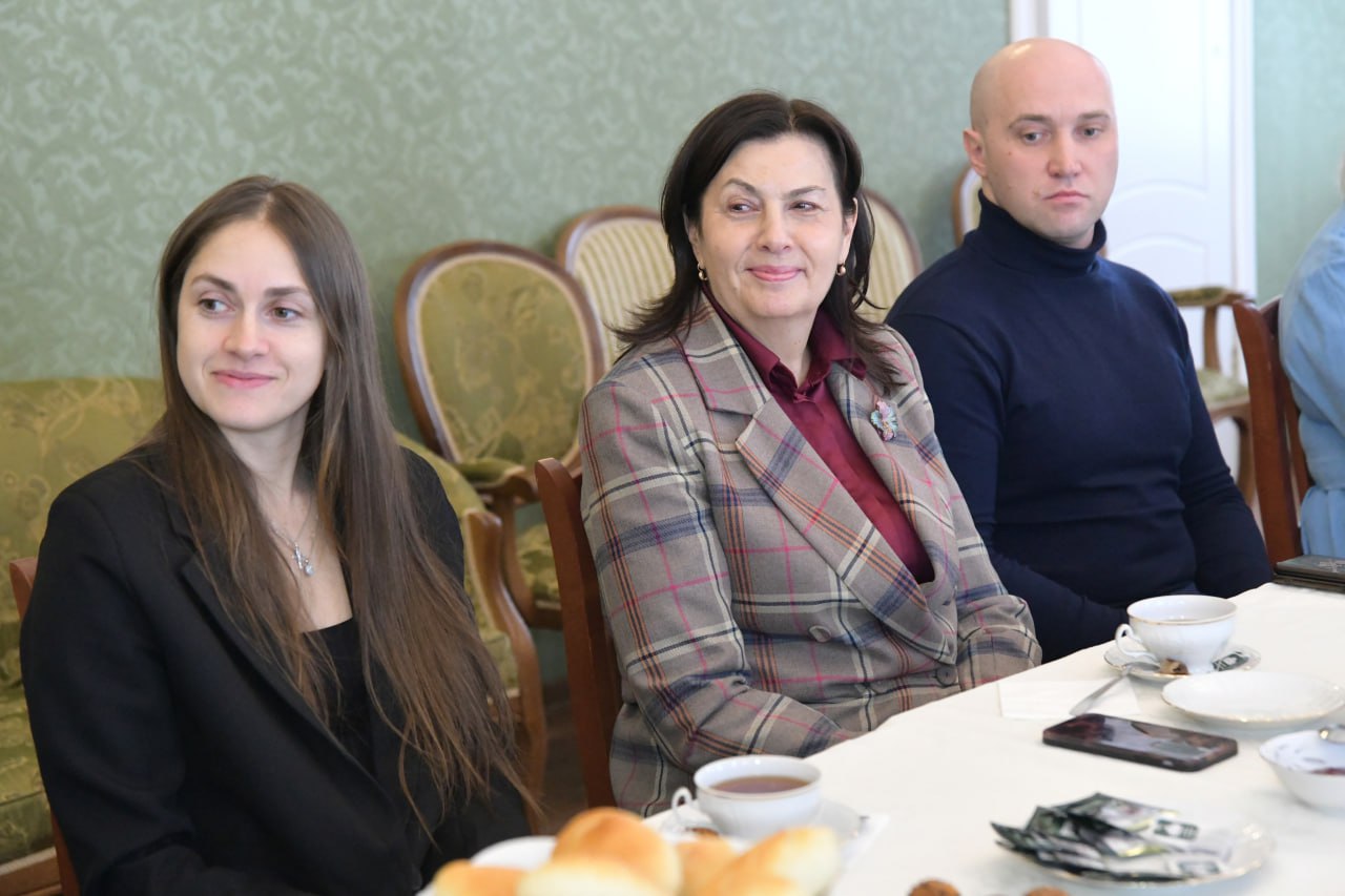 После официальных поздравлений всех ждали цветы, подарки и душевное чаепитие. За столом говорили о важном: о помощи бойцам на передовой, о сборах гуманитарной помощи и о тех, кто является примером стойкости.